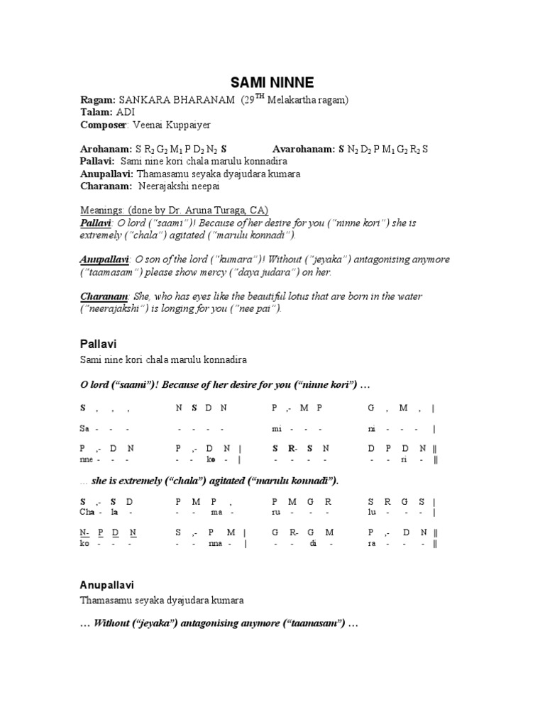 Sami Ninne Kori (Varnam) (Raga: Sri; Tala: Adi)